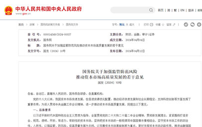 國務(wù)院關(guān)于加強(qiáng)監(jiān)管防范風(fēng)險(xiǎn) 推動(dòng)資本市場高質(zhì)量發(fā)展的若干意見