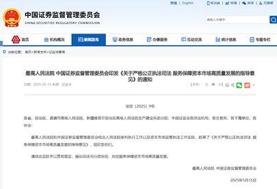 最高人民法院 中國證券監(jiān)督管理委員會(huì)印發(fā)《關(guān)于嚴(yán)格公正執(zhí)法司法 服務(wù)保障資本市場高質(zhì)量發(fā)展的指導(dǎo)意見》的通知