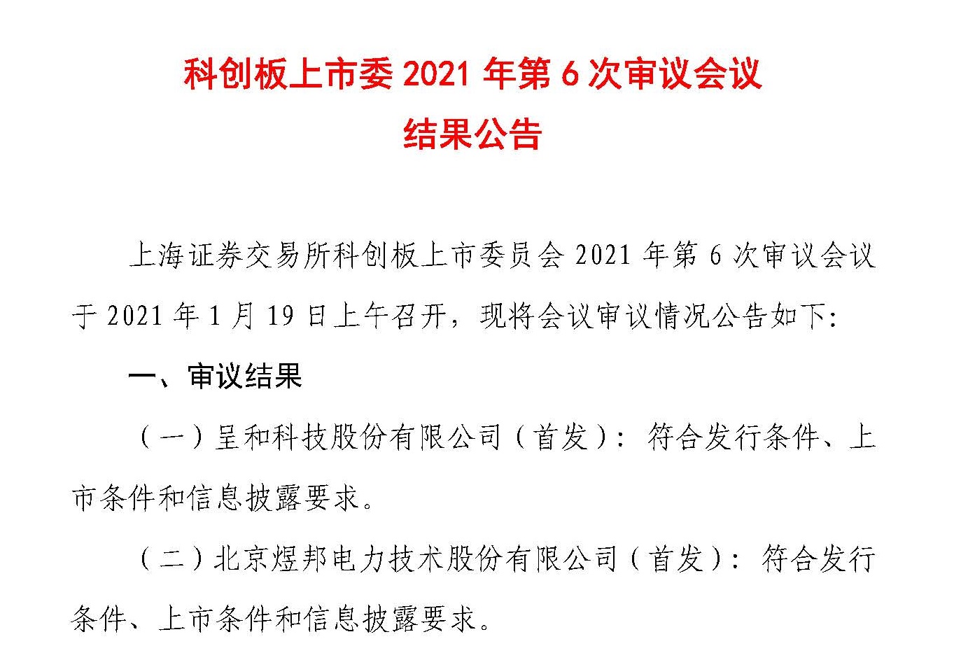 2021年1月19日,呈和科技股份有限公司(簡稱“呈和科技”)首次公開發行股票并在科創板上市項目獲得上海證券交易所科創板上市委員會2021年第六次審議會議審核通過。呈和科技即將登陸科創板。