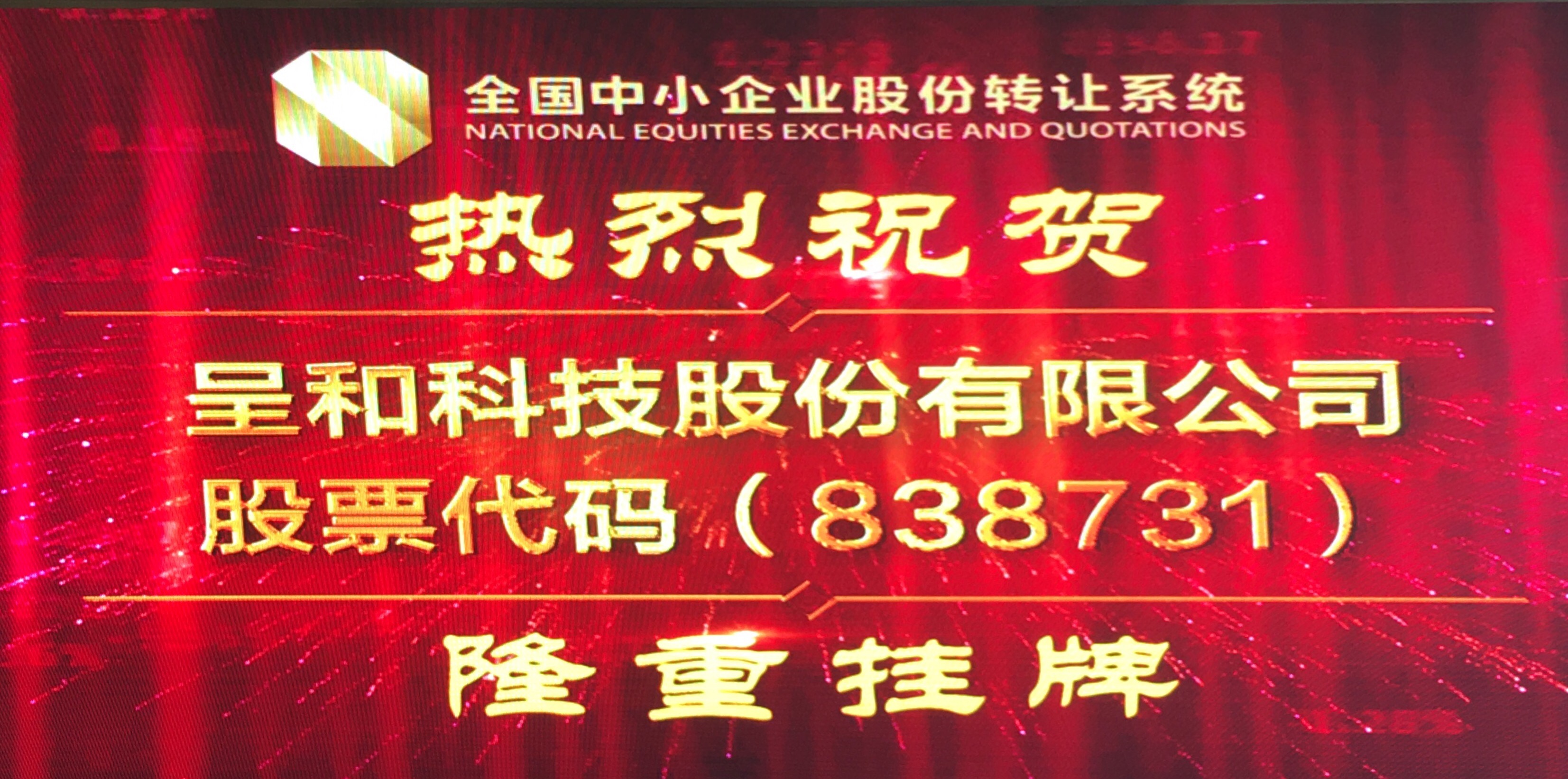 10月11日,呈和科技股份有限公司(簡稱:呈和科技,證券代碼:838731)在全國股轉系統舉行掛牌敲鐘儀式。